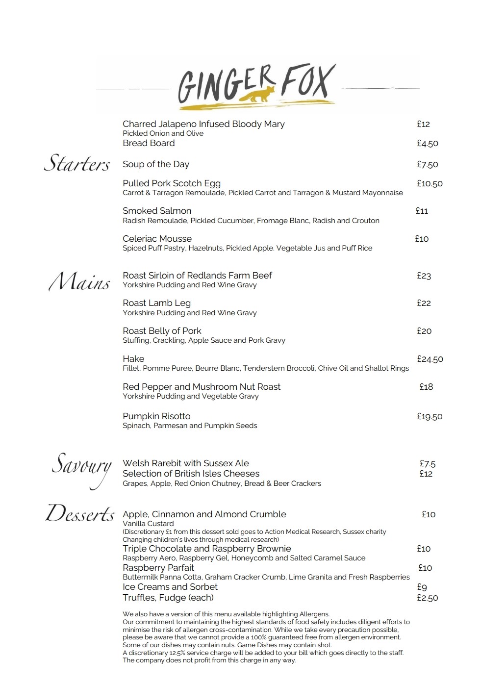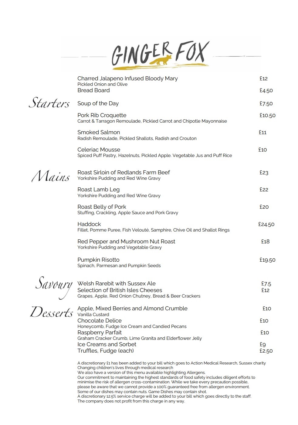 OUR MENU OUR MENU A LA CARTESUNDAY DRINKSCHILDRENS MENU Please note, this is a sample menu only and is therefore subject to change Click here to see our full drinks menu KEEP IN TOUCH WITH THE LATEST GINGER NEWS & EVENTS First Name Last Name Email Address Please email me with great offers and information about what's going on at our venues *